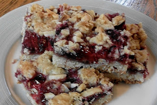 5. Stir almonds into reserved crumb mixture, then sprinkle evenly over the fruit. Bake for 30-35 minutes, or until light golden brown. Allow to cool before cutting into bars.